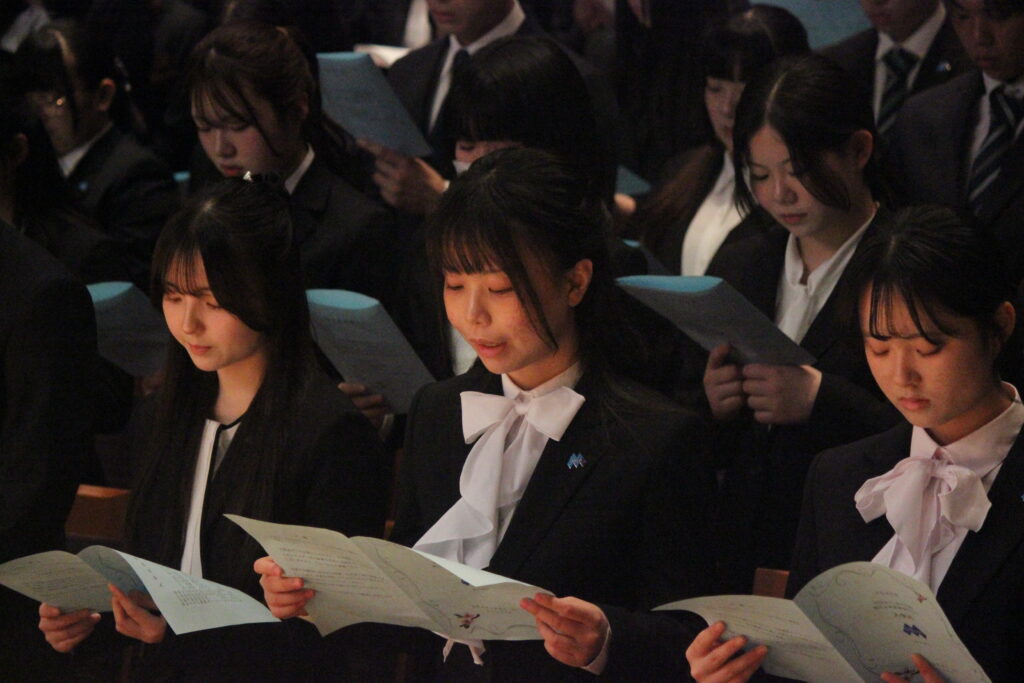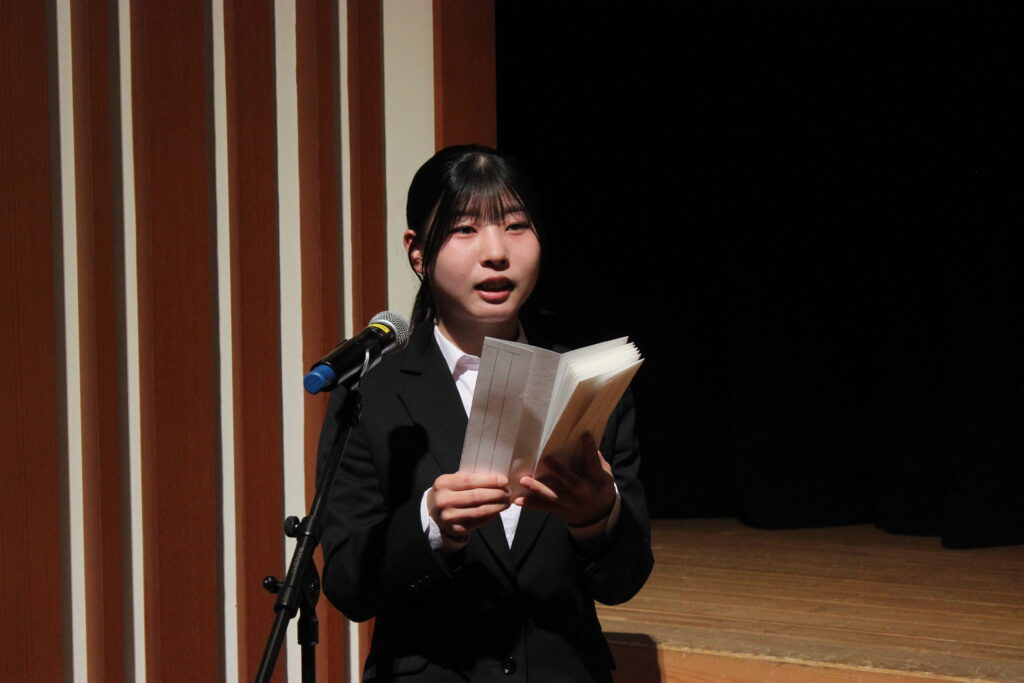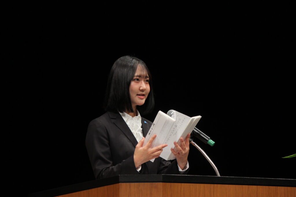 新入生代表のあいさつでは、仲間と共に励まし合い、 沢山の困難を乗り越えて、一歩ずつ成長していくことを誓っていただきました。